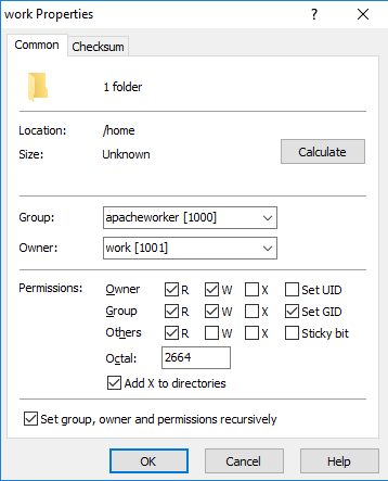 Если в директории будет лежать сайт или его части, нужно выдать права группе юзера, под которым у вас крутится Apache. У меня это apacheworker. После чего нужно выставить такие права на директорию. Set GID нужно чтобы у загруженных на FTP файлов автоматом выставлялись права для группы apacheworker.